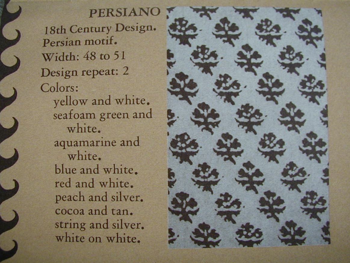 Persiano 18th C. Persian Motif. Pattern less border 48" wide on 54" wide ground. 2 1/4" vertical design repeat. Borders on both selvages.