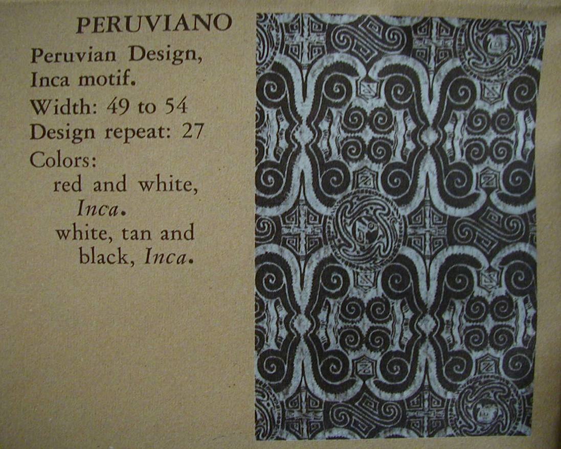 Peruviano Inca Peruvian Design, Inca motif. Pattern less border 49" wide on 54" ground. 26" design repeat. Border on one selvage. |